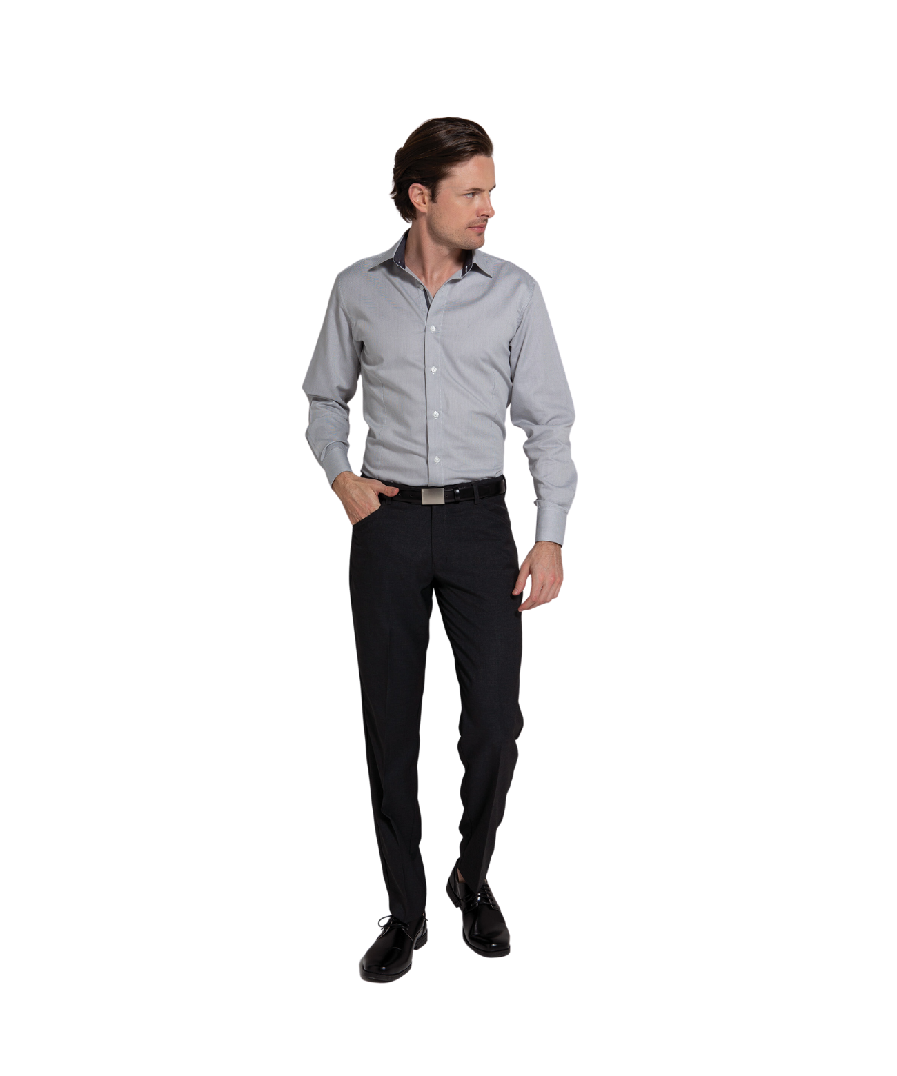 Men’s flat front pant with flex waist pant in Black Mechanical Stretch Wool Tech