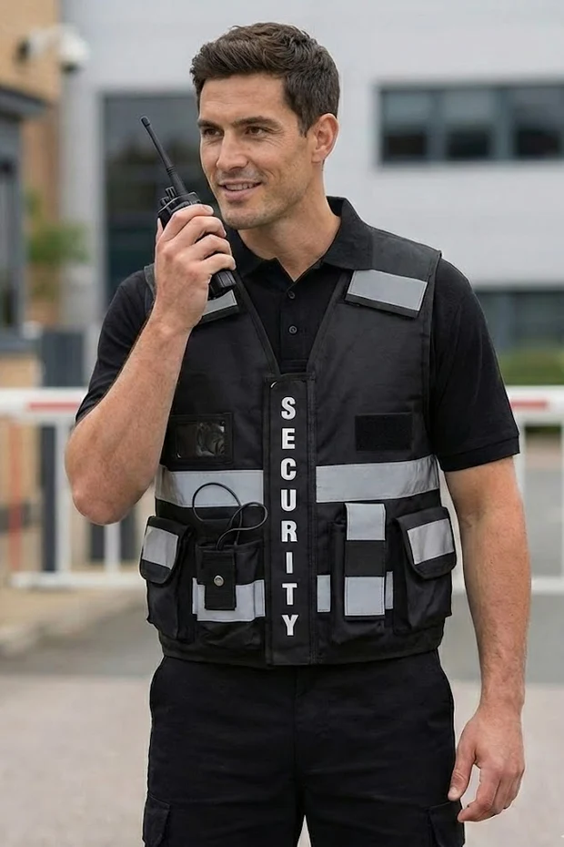 Multiple pockets with Velcro tabs to close – 1 hand cuff pouch, 1 utility pouch, 1 radio pouch. 1 notebook or gloves pouch
